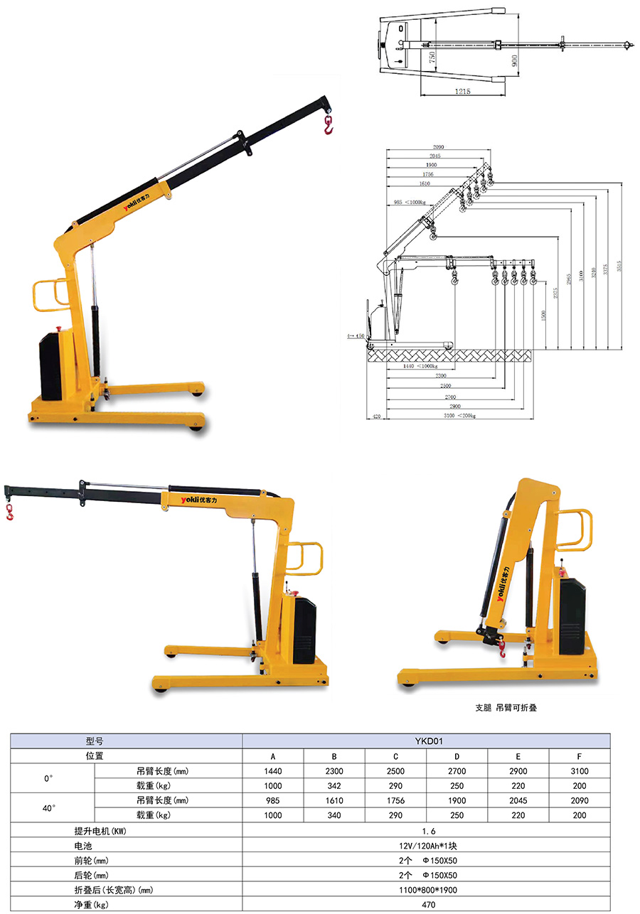 ● 手拉行走,電動(dòng)起升,吊臂電動(dòng)伸縮。